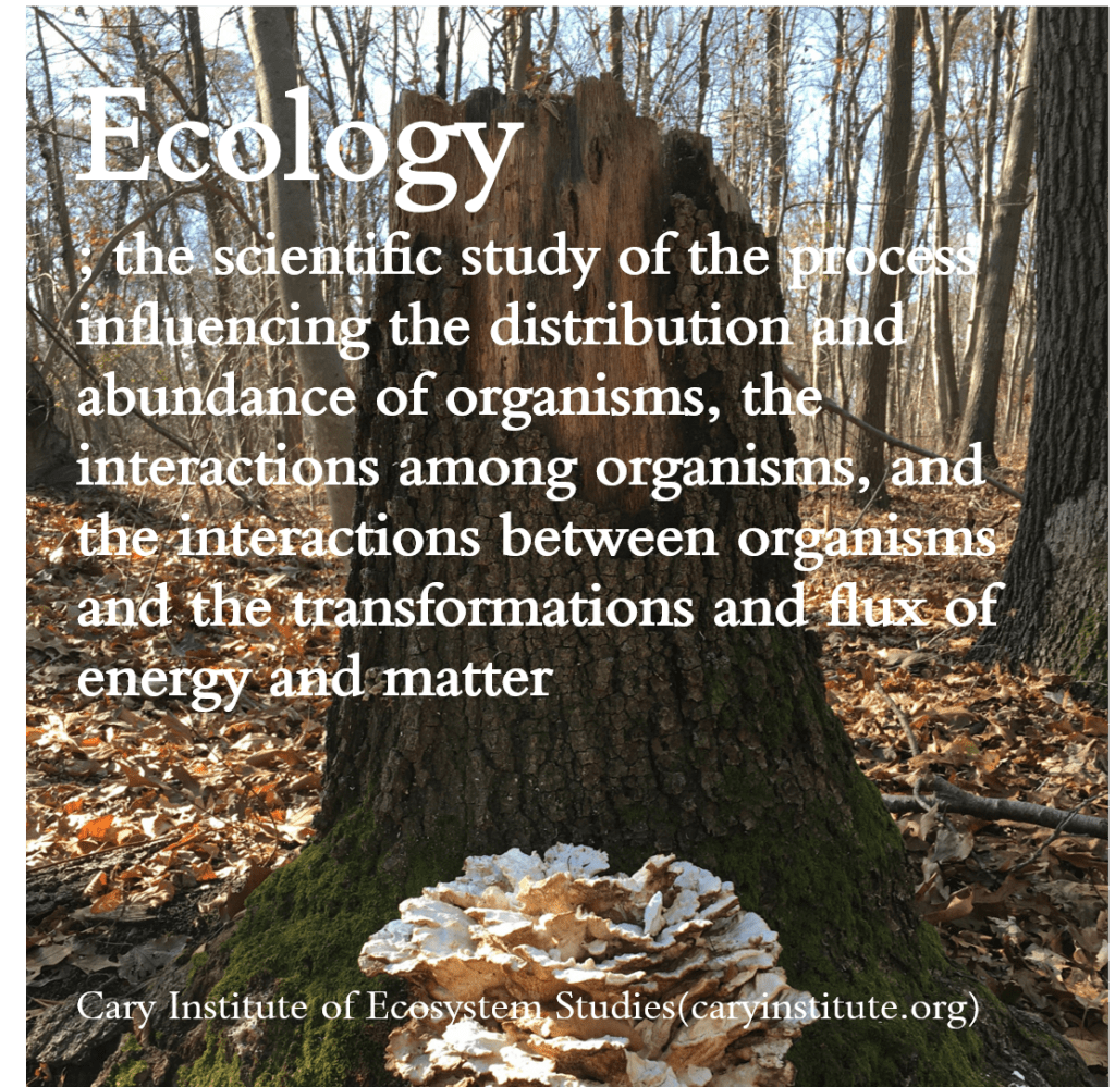 Ecology is the scientific study of the process influencing the distribution and abundance of organisms, the interactions among organisms, and the interactions between organisms and the transformations and flux of energy and matter (Cary Institute)