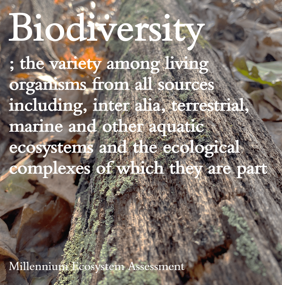 Biodiversity is defined as ‘the variability among living organisms from all sources, including terrestrial, marine, and other aquatic ecosystems and the ecological complexes of which they are part.” Biodiversity can be measured by the number, variety and variability of living organisms in an area. -> and this measurement related to the non-living objects and environment makes ‘ecology’, the relationship between living and non-living factors.