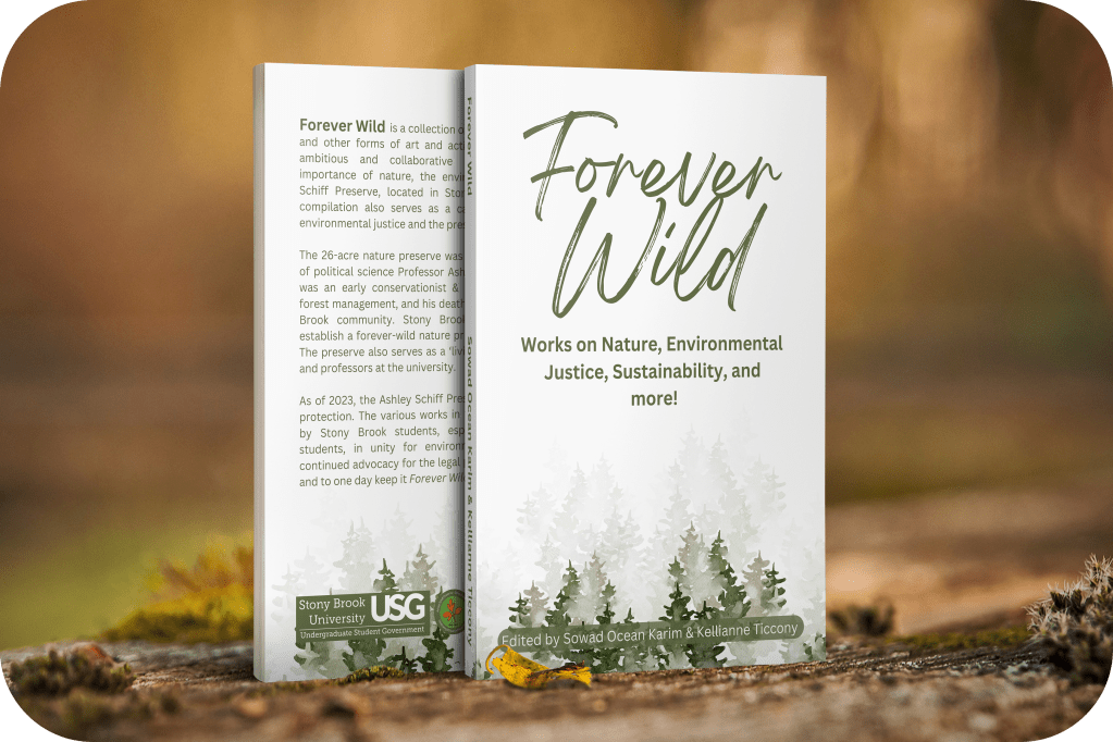 Forever Wild is a collection of various poems, drawings, and other forms of art and activism that aims to be an ambitious and collaborative project celebrating the importance of nature, the environment, and the Ashley Schiff Preserve, located in Stony Brook University. This compilation also serves as a call to action to promote environmental justice & the preservation of nature.